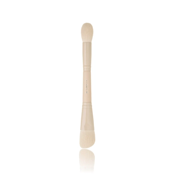 Pędzel MINTI Collection Tapered Powder F60 o charakterystycznym, stożkowym kształcie został zaprojektowany tak, by precyzyjnie dopasować się do konturów twarzy. Dzięki swojej unikalnej budowie pozwala dotrzeć do trudno dostępnych miejsc, jak okolice nosa, broda czy linia szczęki, co sprawia, że jest idealny zarówno do aplikacji pudru na całej twarzy, jak i do miejscowego matowienia wybranych obszarów. Miękkie, ale jednocześnie sprężyste włosie umożliwia subtelne wykończenie makijażu, dodając skórze naturalnego, delikatnego utrwalenia. Świetnie sprawdzi się zarówno z pudrami prasowanymi, jak i sypkimi, a jego wyjątkowa delikatność sprawia, że można go stosować także przy wrażliwej cerze. - BLEND IT Duo Contour & Highlight
