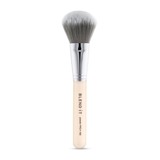 Klasyka wśród profesjonalnych pędzli do pudru. BLEND IT Powder PRO 160 to pędzel o gęsto osadzonym, wyjątkowo miękkim włosiu, które pozwala równomiernie rozprowadzić puder po całej twarzy, zapewniając długotrwały efekt utrwalenia. Dzięki szerokiemu, zaokrąglonemu kształtowi, ten pędzel idealnie pokrywa duże obszary twarzy, co jest niezastąpione, gdy chcemy szybko i równomiernie zmatowić cerę. Jest stworzony przede wszystkim z myślą o pudrach sypkich, które wymagają delikatnej aplikacji, by efekt był naturalny i lekki. Solidne wykonanie oraz profesjonalny design sprawiają, że pędzel ten doskonale leży w dłoni i zapewnia komfort nawet podczas długiego użytkowania, co czyni go nieodzownym elementem każdej kosmetyczki.
