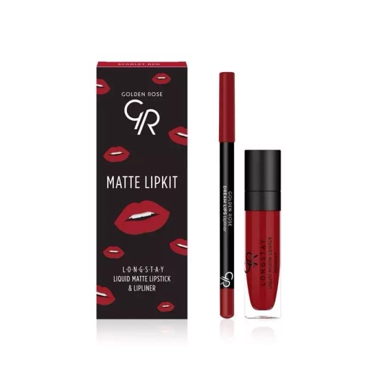 Golden Rose Matte Lipkit Zestaw do Ust Scarlet Red - w 2025 roku, w makijażu na halloween warto postawić na czerwień! Ta głęboka czerwień będzie doskonała do charakteryzacji wampirzycy, mrocznej czarownicy czy każdej imprezowej wersji Halloweenowego make upu.