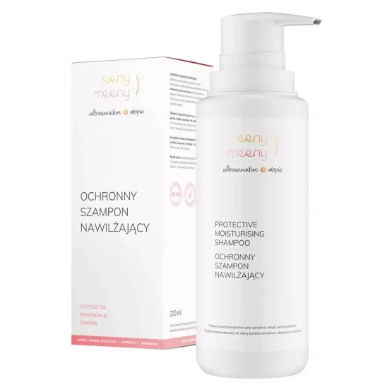 • Eeny Meeny Ochronny szampon nawilżający – delikatny szampon do codziennej pielęgnacji suchej i wrażliwej skóry głowy, który łagodnie oczyszcza bez naruszania naturalnego pH. Kompleks ekstraktów roślinnych wspiera barierę ochronną skóry i pomaga ograniczyć osadzanie się zanieczyszczeń, a formuła nie podrażnia i nie obciąża włosów. Sprawdzi się przy skórze bardzo wrażliwej i atopowej.
