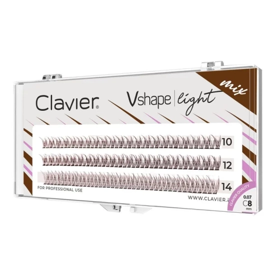 #1 Clavier Kępki rzęs Vshape Light Brown mix 10/12/14mm skręt C,10D