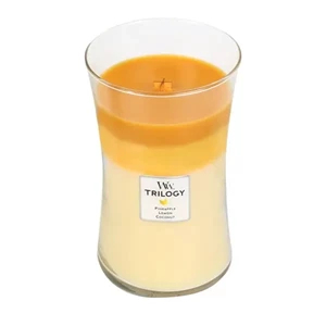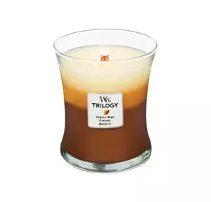 Trzy warstwy koloru i aromatu połączono, aby stworzyć jedną piękną świecę. Każda z nich posiada unikalną kompozycję wosków, które topiąc się uwalniają wyjątkowy zapach: Vanilla Bean; Caramel; Biscotti.