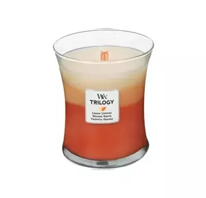 Świece zapachowe WoodWick® posiadają specjalnie zaprojektowany naturalny, drewniany knot. Dzięki temu, wydają one kojący dźwięk przypominający skwierczenie drewna w domowym kominku. paląc się przy tym długo, równo i czysto do 50 godzin!